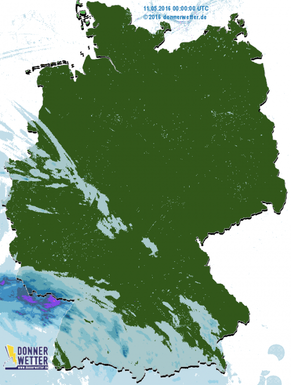 Nur im äußersten Südwesten gab es ein paar Schauer und Gewitter in Deutschland. Sonst war es zumeist trocken und sonnig. Auch heute gibt es nur vereinzelt Schauer und Gewitter. Die Regenmengen lagen meist unter 0,1 l/m2, nur zwischen Alb und Schwarzwald wurden Mengen von bis zu 5 l/m2 erreicht.