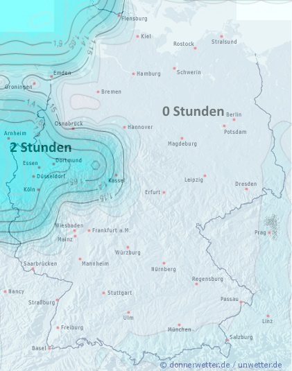 Wir stellen die Blattbenetzung generell in Stunden pro Tag auf der Karte dar. Durch die Lage des Feldes kann die Benetzungsdauer allerdings variieren.
