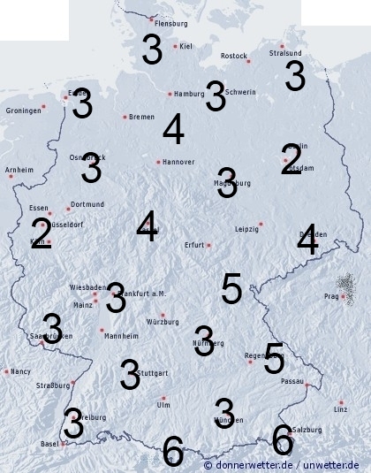 Mit Ausnahme einzelner weniger Regengüsse herrscht in Deutschland freundliches und trockenes Hochsommerwetter. Leichte Benetzung entsteht in der Regel nur durch nächtlichen Strahlungstau. Die Benetzungsdauer liegt dabei allgemein zwischen 2 und 6 Stunden.
