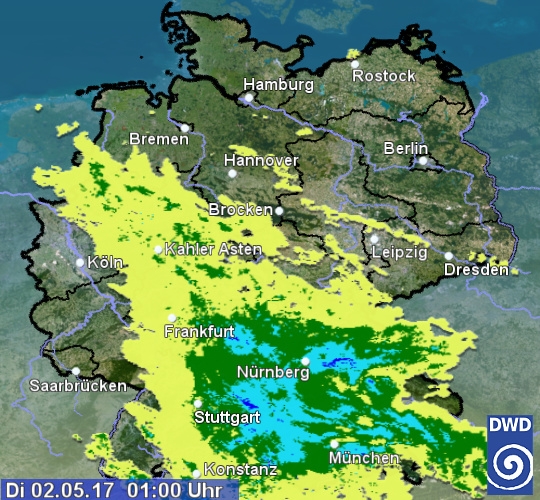 Radarbild von Dienstag, 02.05.2017 um 01.00 Uhr