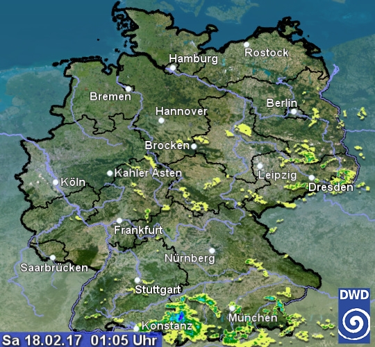 Radarbild vom Samstag, 18.02.2017 um 01.05 Uhr