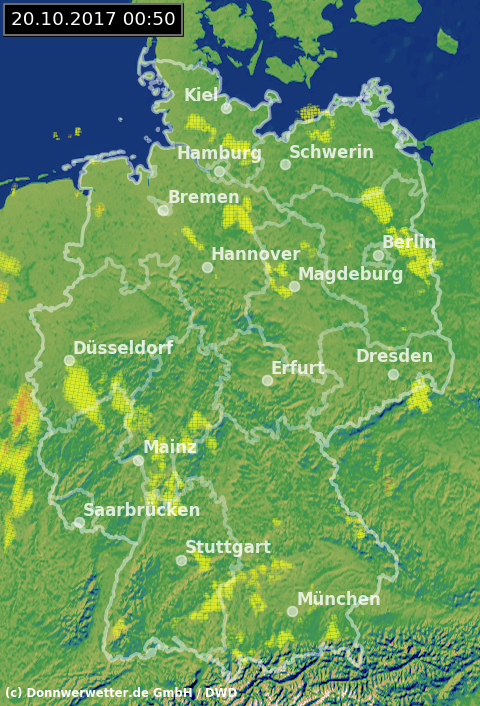 Radarbild von Freitag, 20.10.2017 um 00.50 Uhr