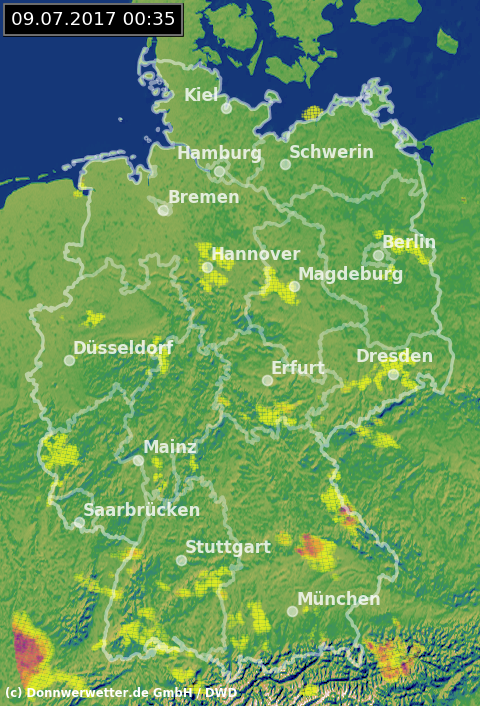 Radarbild von Sonntag, 09.07.2017 um 00.35 Uhr