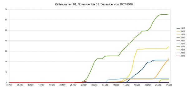 Der Kältesummen-Vergleich der vergangenen 10 Winter