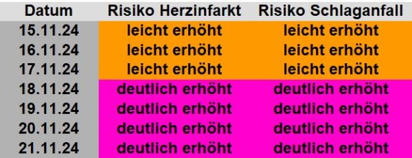 Mit dem Einfluss kühlerer Luft erwarten uns über weite Strecken der kommenden Woche deutlich erhöhte Schlaganfall- und Herzinfarktrisiken.
