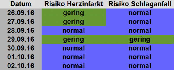 Die Tage um den Monatswechsel herum bringen ruhiges und mildes Hochdruckwetter. Herz- / Kreislaufpatienten sind nur selten erhöhten Risiken ausgesetzt.