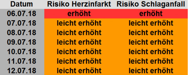 Die Schlaganfall- und Herzinfarktrisiken bis zum 12.07.2018.