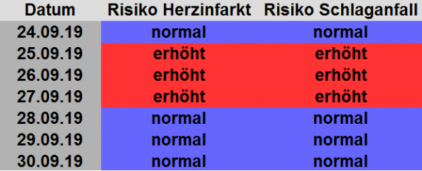 Unser aktuelles Herz-Kreislauf-Wetter bis zum 30.09.2018