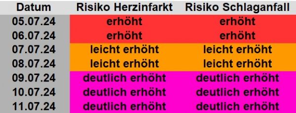 Die Schlaganfall- und Herzinfarktrisiken bis zum 11.07.2024