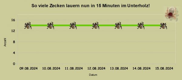 Sowohl am Wochenende als auch in der neuen Woche stößt man im Unterholz auf bis zu 14 Zecken binnen 15 Minuten.