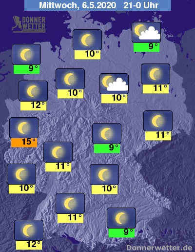 Bis Mitternacht kommen verbreitet Mond und Sterne zum Vorschein.