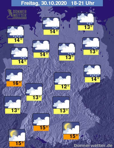 Bis Mitternacht zieht sich der Regen Richtung Sachsen und Brandenburg zurück. Sonst bleibt der Himmel im Norden weiterhin wolkenverhangen, in den anderen Gebieten lassen sich zumindest gelegentlich Mond und Sterne beobachten.