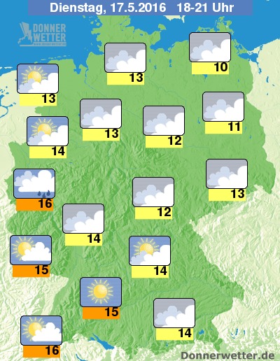 Am Abend lockert die dichte Wolkendecke im Nordwesten phasenweise auf, der Nordosten zeigt sich weiterhin bedeckt aber überwiegend trocken. Am freundlichsten bleibt es zwischen Donau und Main.