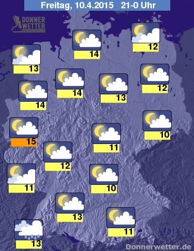 Heute Abend zieht verbreitet nur lockere bis aufgelockerte Bewölkung durch. Im Südwesten des Landes ziehen jedoch dichte Wolken und auch Regen auf, gegen Mitternacht sind auch am Alpenrand einzelne Schauer möglich. Im übrigen Bundesgebiet bleibt es trocken. Die Abendtemperatur liegt bei noch milden 15 Grad in Aachen und etwa 10 Grad in Franken.