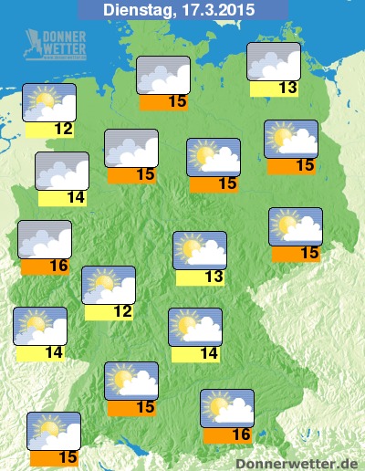 Heute ist es verbreitet heiter und oft sogar sonnig. Im Norden und Westen Deutschlands ziehen jedoch auch zunehmend dichtere Wolken auf, diese bringen jedoch keinen Regen. Die Temperatur steigt auf frühlingshafte Werte zwischen 12 Grad am Spessart und um 16 Grad in München.
