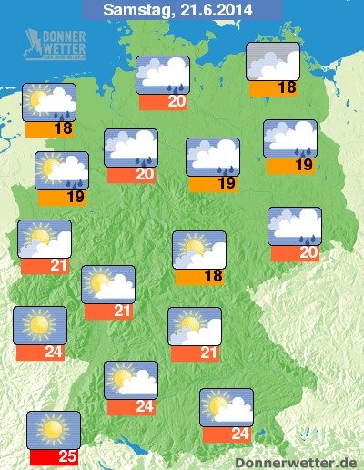 Heute ziehen über die Nordhälfte des Landes häufig dichtere Wolken, die auch für zeitweiligen Regen sorgen können. Von der Mitte bis in den Süden Deutschlands bleibt es bei meist wechselnder Bewölkung jedoch weitgehend trocken, und vor allem nach Südwesten hin ist es auch vielfach sonnig. Die Temperaturen steigen auf recht kühle 18 Grad an den deutschen Küstenlinien und auf sommerliche 25 Grad im Breisgau.