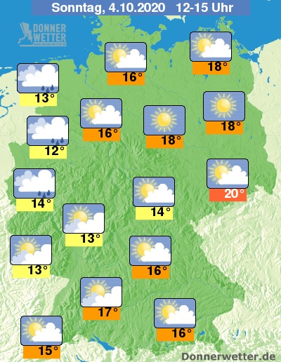 Heute Nachmittag ist es in den westlichen Landesteilen meist stark, teils aufgelockert bewölkt, dabei fällt gebietsweise Regen. In der übrigen Republik ist es dagegen verbreitet heiter bis wechselnd bewölkt, nicht selten sogar sonnig, dabei bleibt es trocken. Die Temperatur steigt auf teils nur 12 Grad im Münsterland und bis 20 Grad in der Lausitz.