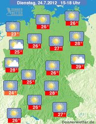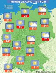 Am Montag wird es schon langsam wärmer, bei teilweise heiterem, oft sonnigem Wetter wird schon stellenweise die fast schon 'magische' 25-Grad-Sommermarke erreicht. Ab diesem Wert spricht man in der Meteorologie von einem 'Sommertag'.