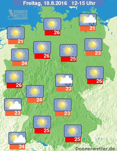Heute Nachmittag ist es über dem Land verbreitet heiter bis sonnig, oft ist es sogar komplett wolkenlos, dazu bleibt es auch weitgehend trocken. Im Laufe des Nachmittags können sich im Westen und Süden aber auch einige Quellwolken bilden, die zunächst jedoch nur selten Schauer oder Gewitter bringen, sonst bleibt es trocken. Die Temperatur steigt auf 21 Grad in Ostfriesland und bis etwa 26 Grad im Ruhrgebiet.
