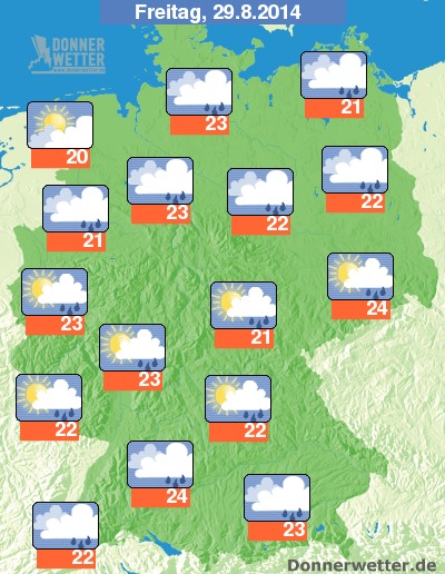 Am Freitag vergeht dann vor allem dem Nordosten sein Sommerlachen - dichte Wolken und Regen bestimmen den Tag. Im Süden und der Mitte Deutschland hat sich die Sonne dagegen noch nicht ganz verabschiedet, hier heitert es auch häufiger mal auf.