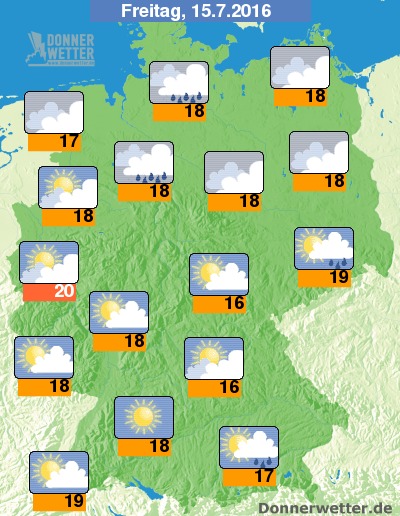 Am Freitag ist es über Norddeutschland überwiegend stark, hier und da aber auch mal aufgelockert bewölkt, dazu bilden sich nur vereinzelt auch Schauer. Von der breiten Mitte bis in den Süden des Landes ist es häufig heiter und vor allem im Süden auch regional sonnig. Es können jedoch auch mal einige Wolken durchziehen, dazu sind dann vereinzelte Schauer möglich. Die Temperatur steigt auf 16 Grad im Grabfeld und bis 20 Grad in Aachen.