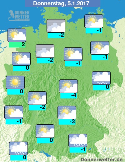 Höchstwerte um -4 bis 2 Grad C am Donnerstag.