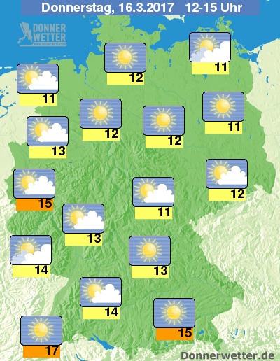 Ein herrlicher Frühlingstag steht uns heute bevor. Bereits am Mittag fällt an Rhein und Donau die 15 Grad Marke. Dazu gibt es meist strahlenden Sonnenschein, der nur selten von einzelnen Wolken unterbrochen wird.