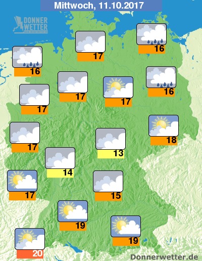 Am Donnerstag ziehen von Nordwesten nochmals Regengüsse bis in die Landesmitte herein, anschließend beruhigt sich der Wind. Sonst wechseln sich bei wenig geänderten Temperaturen Sonne und Wolken miteinander ab.