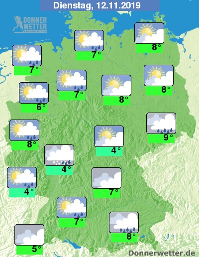 Die Höchsttemperaturen liegen allgemein im einstelligen Bereich zwischen 4 und 9 Grad.