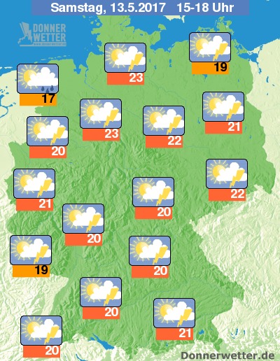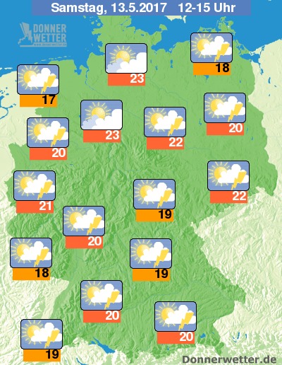 Bis zum Abend halten sich die Unwetter über Deutschland und es sind immer wieder Gewitter möglich. Wolken und Sonne wechseln sich hierbei ab.