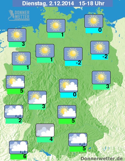 Heute Nachmittag scheint in der Nordhälfte des Landes verbreitet die Sonne und es ziehen meist nur lockere Wolkenfelder durch, dazu bleibt es trocken. Nach Süden hin bleibt es dagegen weitgehend bedeckt oder neblig-trüb und gebietsweise fällt auch etwas Regen oder Schneeregen, in den höheren Lagen fällt Schnee. Dabei kann es teils gefährlich glatt werden. Die Temperatur liegt bei -2 Grad in der Uckermark und bis 6 Grad im Breisgau.