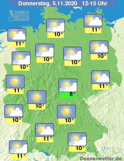 Bis zum frühen Abend ändert sich an der Wetter- und Temperaturverteilung wenig. Lediglich im Nordseeumfeld können die Wolkenschleier auch mal dichter werden.