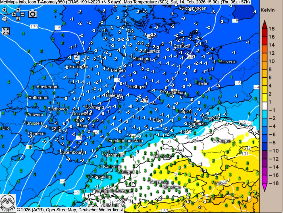 Werte am Samstagnachmittag um -3 bis 5 Grad.