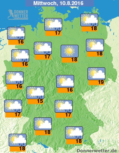 Am Mittwoch sind vor allem am Vormittag oft heitere bis sonnige Abschnitte möglich, gebietsweise ziehen jedoch schon dann dichte Wolken durch und es sind einzelne Schauer möglich. Ab den Nachmittagsstunden nimmt die Schaueraktivität über dem Land insgesamt noch weiter zu, zudem sind auch örtliche Gewitter möglich. Zwischendurch kann sich allerdings auch gelegentlich die Sonne zeigen. Die Temperatur steigt auf 15 Grad am Taunus und bis 19 Grad in der Lausitz.