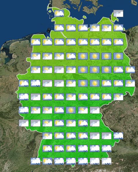 Heute Nachmittag bleibt es vor allem im Süden noch verbreitet regnerisch. Dichte Wolken ziehen auch über weite Teile Westdeutschlands, dazu bilden sich einzelne Schauer. Im großen Rest des Landes scheint dagegen oft auch die Sonne und es ziehen meist nur lockere oder noch aufgelockerte Wolken durch, dazu bleibt es auch meist trocken. Die Temperatur liegt bei 12 Grad um München und bis 19 Grad in Berlin.