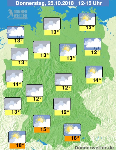 Im Laufe des Nachmittags ändert sich an der Wetter- und Temperaturverteilung in Deutschland wenig. Weiterhin kann es über dem Norden stellenweise nass werden. Die größten Chancen auf Sonne bekommt man vom Breisgau bis ins Alpenvorland. Hier wird es mit 15 bis 18 Grad auch am mildesten, während es sonst eher herbstlich frisch bleibt.