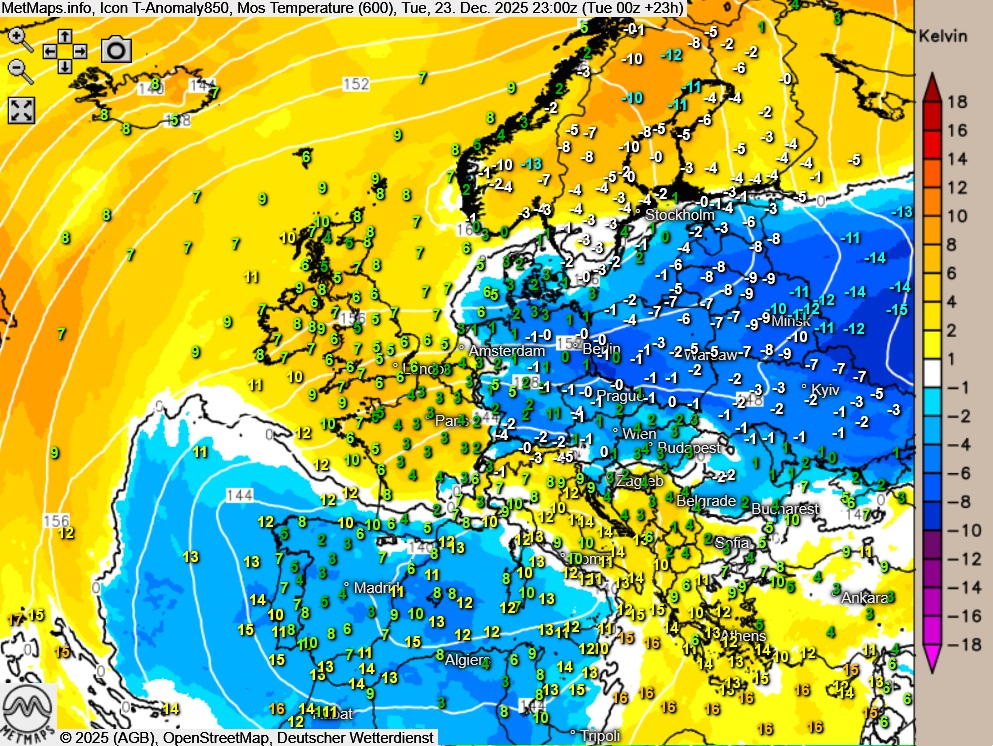 Die Temperaturen erreichen Höchstwerte um 0 bis 7 Grad.