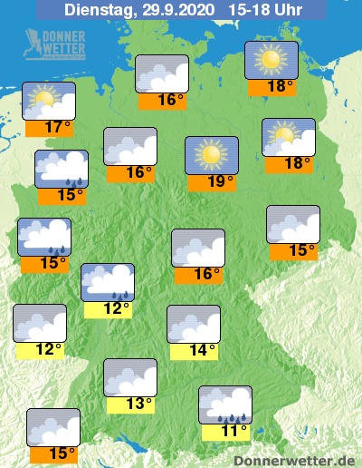 Am Nachmittag fällt im Süden und Westen aus dichten, grauen Schichtwolken gelegentlich Regen, auch in der Lausitz kann es stellenweise mal etwas tröpfeln. In den anderen Gebieten gibt es oft eine freundliche Mischung aus Sonne und Wolken. In Teilen von Niedersachsen und Sachsen-Anhalt strahlt die Sonne auch für längere Zeit.