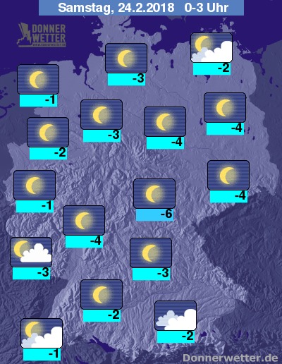 In der Nacht ist der Himmel meist sternenklar, einige harmlose Wolken ziehen vor allem über das Ostseeumfeld, den Alpenrand sowie den äußersten Südwesten hinweg.