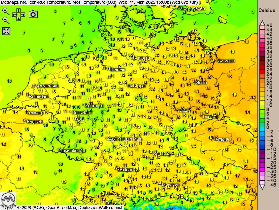 Die Temperaturen erreichen Höchstwerte um 8 Grad an der Nordseeküste und um 16 Grad an der Neiße.