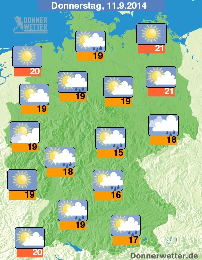 Am heutigen Tag müssen sich viele von uns auf deutlich unbeständigeres und teils kühleres Wetter einstellen. Besonders im Süden und Osten Deutschlands können sich neben zeitweise aufgelockerter Bewölkung auch immer wieder Schauer und auch Gewitter entwickeln. Im Norden und Westen sind die Schauer seltener, hier hat die Sonne gute Chancen sich häufig zu zeigen. Die Temperatur steigt auf 15 Grad im Thüringer Wald und 21 Grad in Berlin.