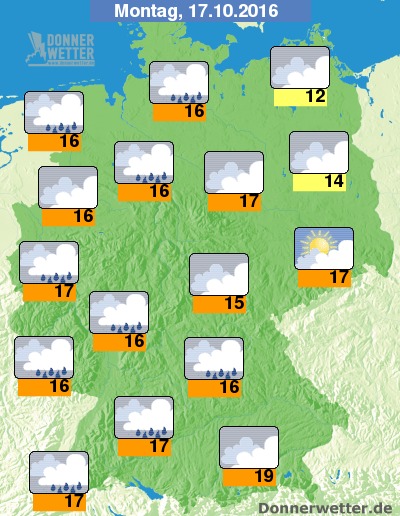 Die neue Woche startet deutlich unbeständiger und nasser als die letzte Woche endete. Es zieht verbreitet wechselnde bis starke Bewölkung durch, wobei es zunächst vor allem in den westlichen Landesteilen regnet, der Regen breitet sich jedoch bis zum Abend weiter nach Osten hin aus, über der Osthälfte bleibt es jedoch trocken. Die Temperatur steigt auf 12 bis 19 Grad.