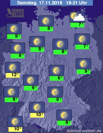 In der Nacht zum Sonntag bleibt der Himmel verbreitet sternenklar, lediglich über dem Nordosten ziehen einige Wolkenfelder durch, es bleibt aber landesweit trocken. Die Temperatur sinkt bis zum Morgen auf Werte zwischen 4 Grad im Rheinland und bis -2 Grad im Vogtland.