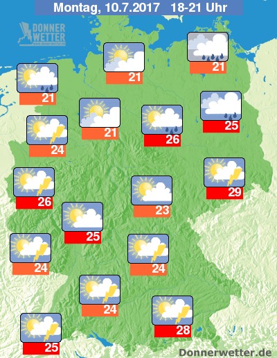 Heute Abend bleibt es bei dem wechselhaften Sommerwetter, dabei sind neben Auflockerungen verbreitet Schauer und einzelne Gewitter möglich. Vor allem über der Mitte Deutsclands ist es aber auch häufig trocken. Die Temperatur liegt bei 21 Grad an der Nordseeküste und bis 29 Grad in Dresden.