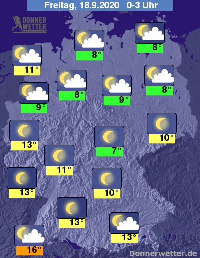Bis zu den Frühstunden kühlt die Luft auf 12 bis 6 Grad ab, lediglich im Breisgrau bleibt es mit Werten um 15 Grad noch etwas milder.
