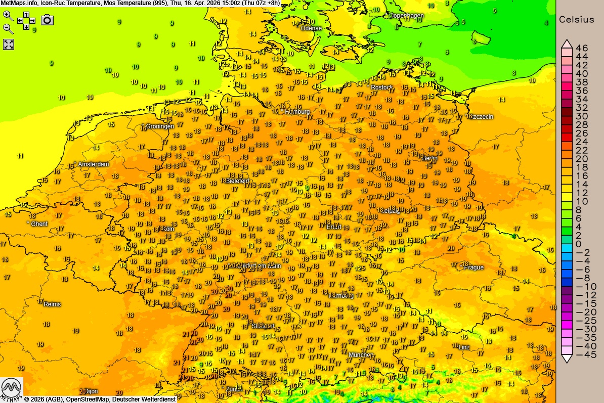 Höchstwerte um 16 bis 20 Grad.