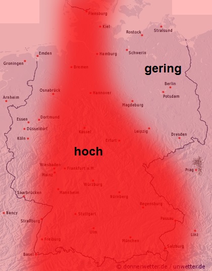 Am Donnerstag scheint zwischen der Ostseeküste und Berlin-Brandenburg häufig die Sonne und es bleibt hier weitgehend trocken. Im übrigen Bundesgebiet zeigen sich zum Teil Auflockerungen, jedoch ziehen oft auch dichte Wolken durch, dabei sind verbreitet Schauer und teils kräftige Gewitter möglich. Die Temperatur steigt auf 24 Grad an der Nordsee und bis 29 Grad in Magdeburg.