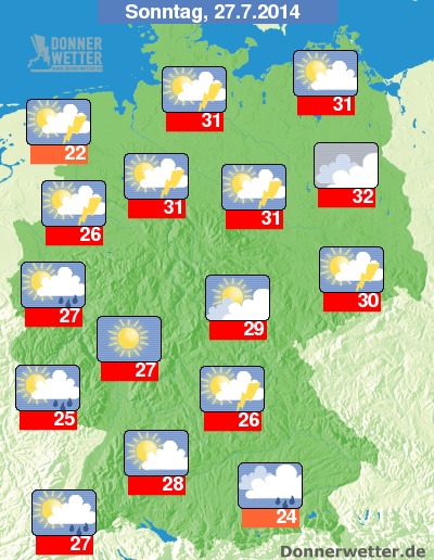 Besonders am Nachmittag können sich in vielfach feuchtwarmen Luftmassen aber verbreitet Schauer und Gewitter entwickeln. Die Temperatur steigt auf 22 Grad an der Nordseeküste und heiße 32 Grad in Berlin.