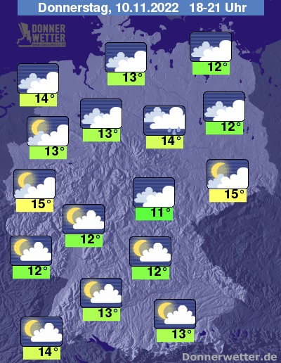 Heute Abend ziehen über der Nordhälfte Deutschlands viele und zumeist dichte Wolken durch, dazu sind nur selten ein paar Tropfen möglich. Weiter nach Süden hin ist es auch teils stark bewölkt, jedoch lockert der Himmel über weite Landesteilen auf, dazu bleibt es trocken. Die Temperatur liegt bei 11 Grad in Jena und 15 Grad in Köln. An der See weht der Wind weiterhin zum Teil stürmisch.