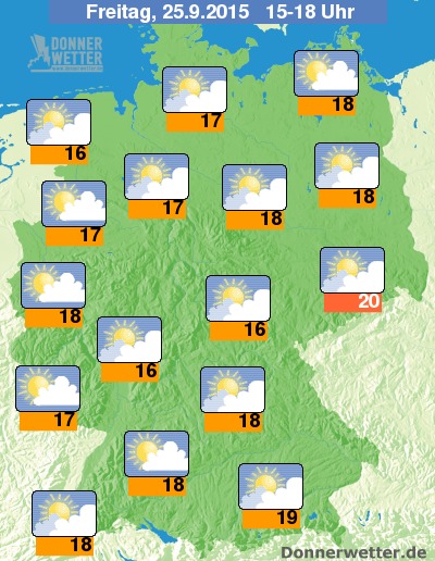 Heute Nachmittag ist es vor allem über Norddeutschland oft heiter bis sonnig und nur gebietsweise zieht auch mal starke Bewölkung durch. Weiter nach Süden hin gibt es hingegen ein Wechsel aus teils lockeren, teils aber auch mal etwas dichteren Wolken. Es bleibt jedoch landesweit trocken. Die Temperatur steigt auf 16 Grad im Vogtland und bis 20 Grad in Niederschlesien.